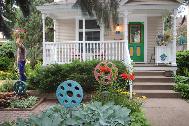 Just steps away from light rail, the front garden of Bobbin House is a small oasis in early summer.