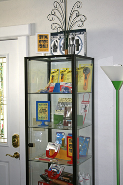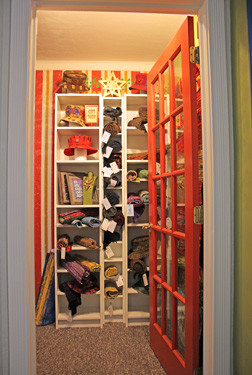 If you're looking for a gift to suit a fiber artist, there are many choices available at Bobbin House Studio. We don't have a whole store, but our "Gift Shop Cabinet" is stuffed with fun and functonal sewing supplies which are always priced at 30% below typical retail. The "Hallway" gift shop offers rugs, towels, hats, scarves, wall-hangings, placemats and whatever else we happen to make!