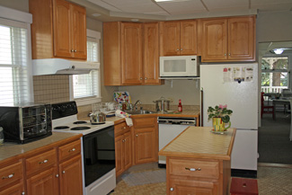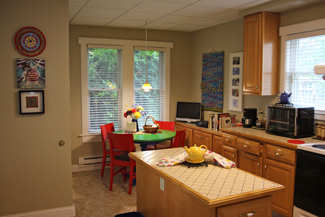 The kitchen is on the first floor and is shared by the studio. It's equipped with all the basics and many of the extras too! The list includes refrigerator, electric stove, exhaust hood, sink, dishwasher, small appliances, stainless pots and pans, utensils, dishes, flatware, spices and condiments. A table and four chairs provide space for dining. Plus, ample private storage for your personal stash of food items will make you feel right at home.