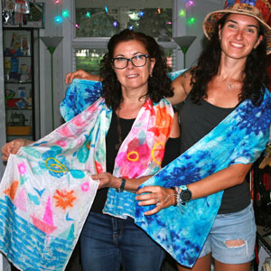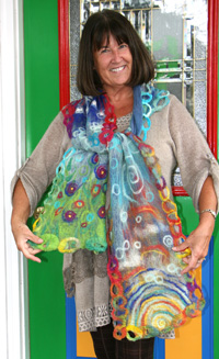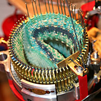 We dabble in many of the fiber arts, including weaving, quilting, garment construction, dyeing, fabric painting and circular sock machine knitting.